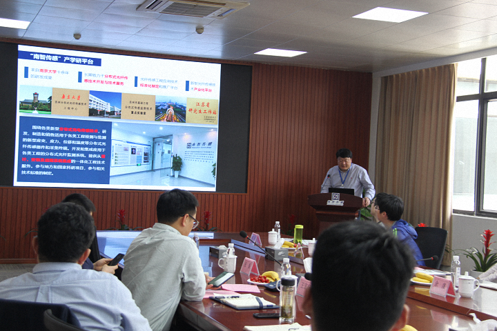 施斌教授首先對機場建設(shè)指揮部調(diào)研組一行的到來表示熱烈歡迎,向大家介紹了大地感知與智慧控災(zāi)產(chǎn)學(xué)研創(chuàng)新平臺運行機制和南智公司的發(fā)展歷程,并對光纖傳感技術(shù)在機場建設(shè)中的應(yīng)用前景表示肯定,他指出,西部機場發(fā)展速度快、發(fā)展質(zhì)量高,雙方具有良好的合作基礎(chǔ),南智公司將全力支持西部地區(qū)機場的數(shù)字機場建設(shè),大力推動雙方合作共贏;隨后,魏廣慶博士向來訪專家詳細(xì)匯報了南智公司光纖傳感技術(shù)的發(fā)展歷程、技術(shù)體系和傳感產(chǎn)品,重點介紹了公司在機場路基、道面結(jié)構(gòu)中的分布式光纖智能監(jiān)測的技術(shù)路線和應(yīng)用案例,并針對重點問題與來訪專家進(jìn)行了熱烈討論。