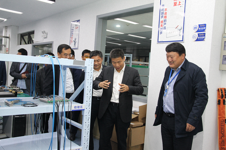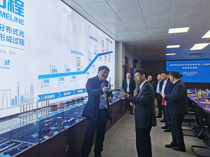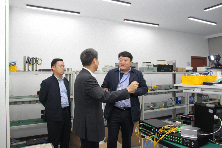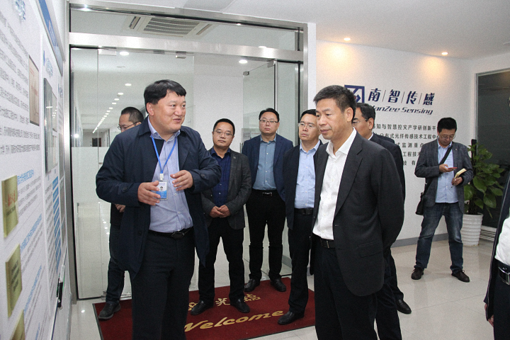 覃市長一行首先前往我司生產(chǎn)測試中心,參觀了傳感器生產(chǎn)、封裝、測試車間,魏廣慶博士詳細(xì)介紹了南智光纖傳感產(chǎn)品的生產(chǎn)、測試、標(biāo)定、質(zhì)檢等流程,雙方就各產(chǎn)品的應(yīng)用領(lǐng)域和前景做了深入交流。生產(chǎn)測試中心參觀結(jié)束后,覃市長一行又興致勃勃地來到我司系統(tǒng)研發(fā)中心,并對我司研發(fā)生產(chǎn)的儀器設(shè)備及系統(tǒng)平臺(tái)給予了高度評(píng)價(jià)。