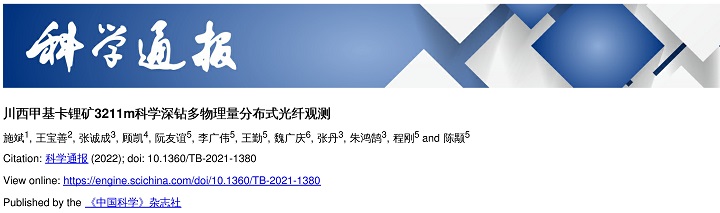 2.施斌, 王寶善, 張誠成, 顧凱, 阮友誼, 李廣偉, 王勤, 魏廣慶, 張丹, 朱鴻鵠,程剛 ,陳颙. 川西甲基卡鋰礦3211m科學深鉆多物理量分布式光纖觀測[J].科學通報,2022