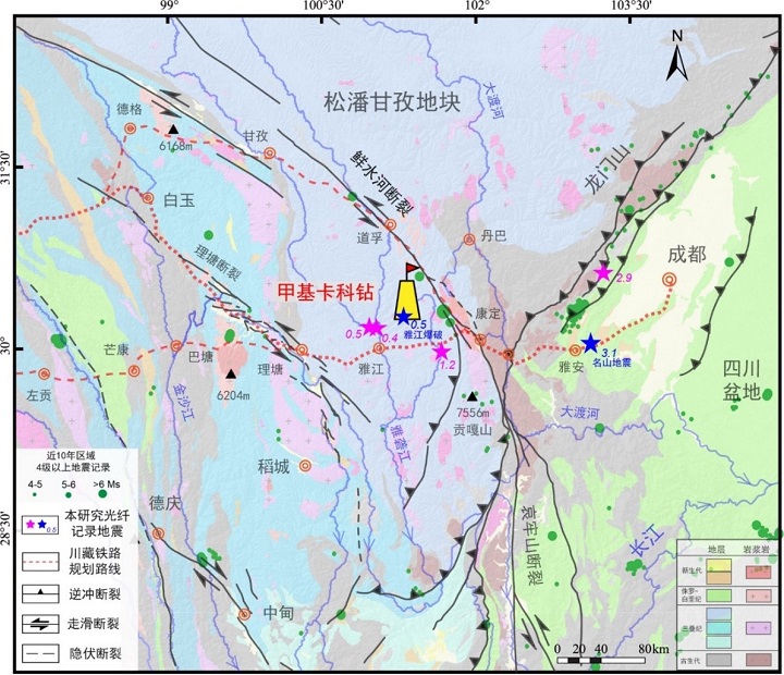 青藏高原東部地質(zhì)簡圖及甲基卡科鉆位置(圖源:《科學通報》)